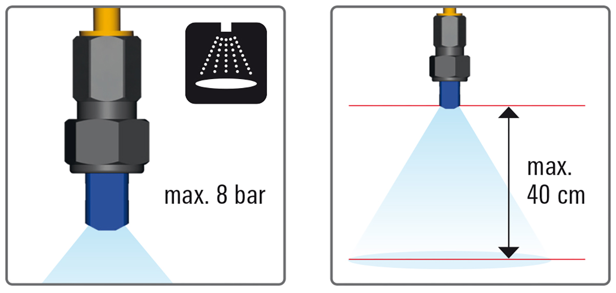 - Maximalt avstånd mellan munstycke och målyta 40 cm